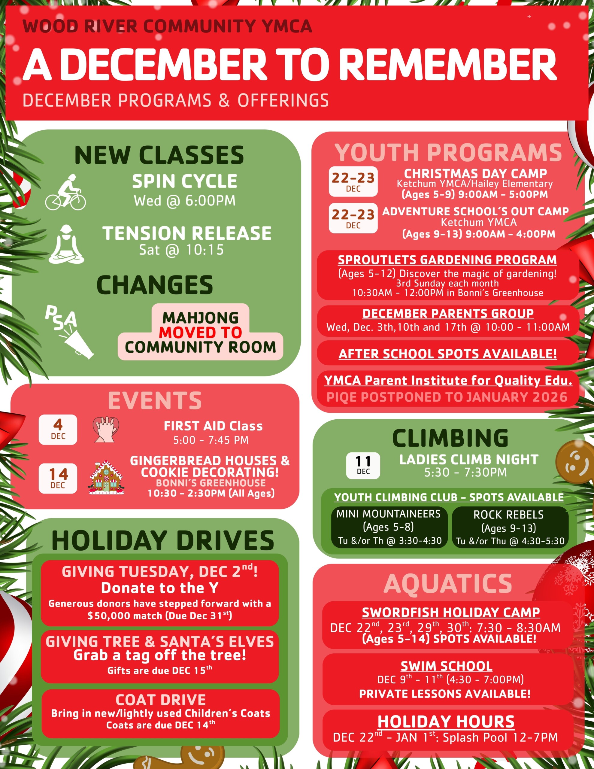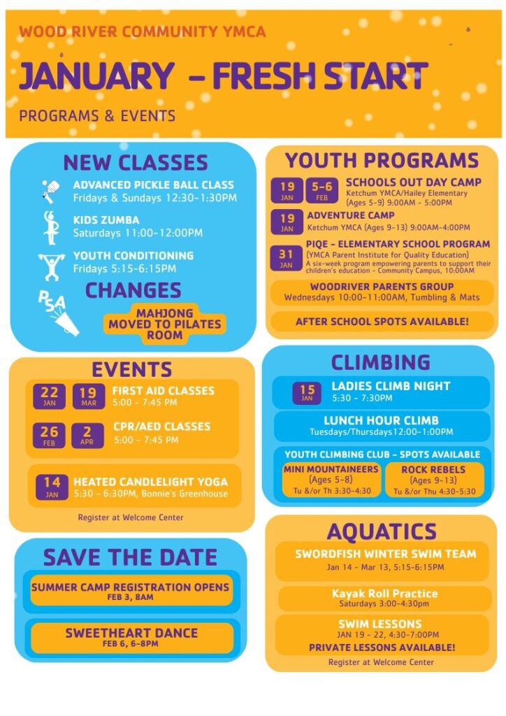 Monthly Newsletter Youth Programs Registration & Information Fitness Class Schedule & Info Aquatics Information Climbing Information